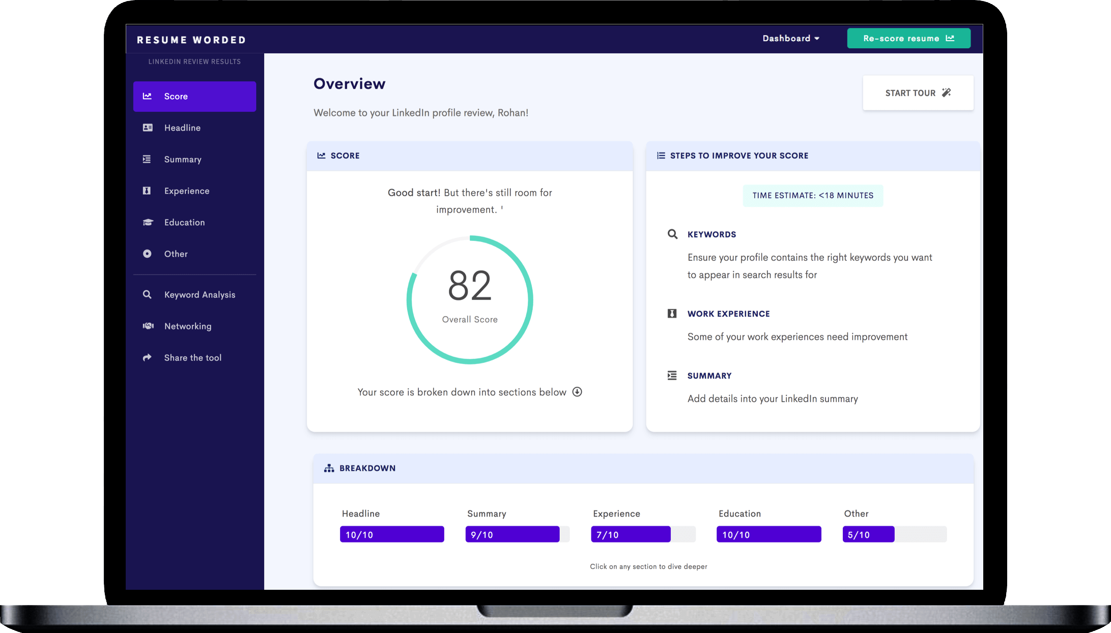 Our platform gives you detailed tips to improve your LinkedIn profile, in addition to